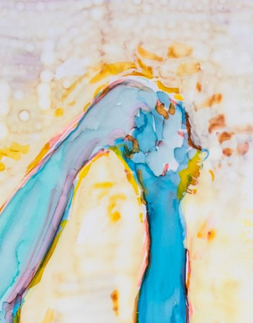 Acrylic paint and markers on translucent polyester paper -
